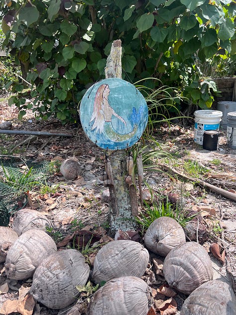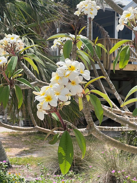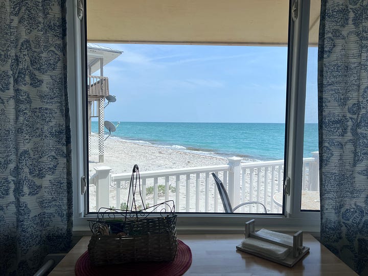 The island is especially beautiful, with tall green trees, brightly colored flowers, immaculate white sands, and colorful houses with whimsical details out front like mermaid and manatee mailboxes, old blue boats repurposed for garden planters, and even embroidered coconuts and colorful buoys. Our week was spent swimming, paddle boarding, and making sand castles during the day, playing board games, and cooking at night!
